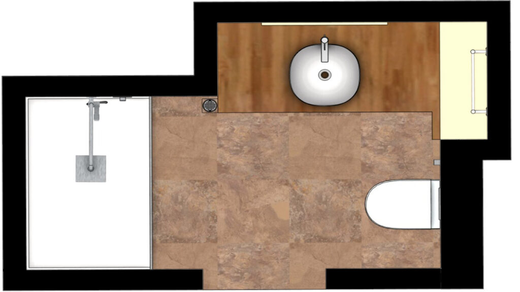 Proje sürecinde, banyonun tasarımı baştan sona yeniden ele alınmıştır. Kullanıcı ihtiyaçları doğrultusunda planlama yapılmış; 3D görseller, mimari çizimler ve uygulama detayları hazırlanarak onay süreci tamamlanmıştır.