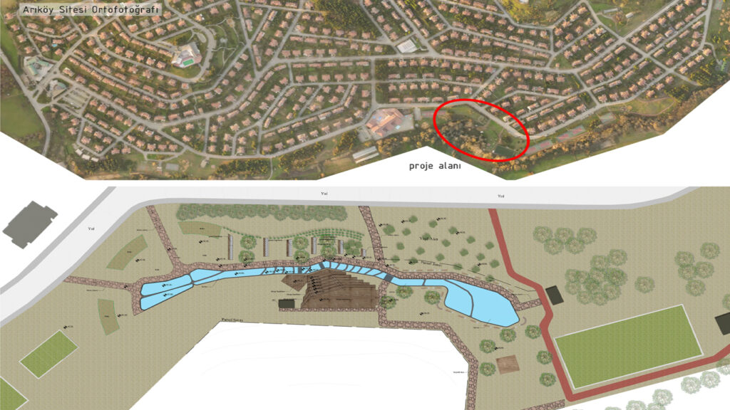 Yaklaşık 7 dönümlük alanda yer alan proje, iki doğal gölet, bu göletleri bağlayan kademeli bir dere ve çevresindeki park alanını kapsamaktadır. Göletler farklı kotlarda konumlanmakta ve aralarındaki bağlantı, şelale etkisiyle sağlanan dere ile kurulmuştur. Alt gölette toplanan su, pompalar yardımıyla yeniden üst gölete aktarılarak sistemin doğal devirdaimi sağlanmıştır.