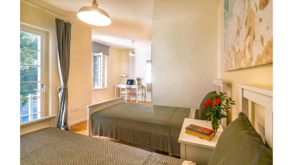 Çatı katında yer alan ebeveyn yatak odasında, tek cephe boydan boya gardırop olarak planlanmış; diğer cepheler ise özel duvar kâğıdıyla tamamlanmıştır. Yatak odaları ve giriş dresuarında koç boynuzlarından tasarlanan askılar yerleştirilmiştir.