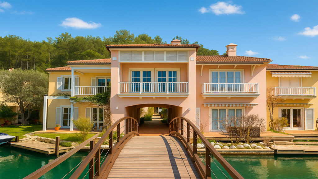 Denizin kanallarla site içine alındığı bu özel yerleşimde evler yalı formunda planlanmıştır. Bu bağlamda projeye denizcilikten ilham alan “Güverteye Çıkış” temasıyla yaklaşıldı; tasarımın çıkış noktası ise yelken oldu.