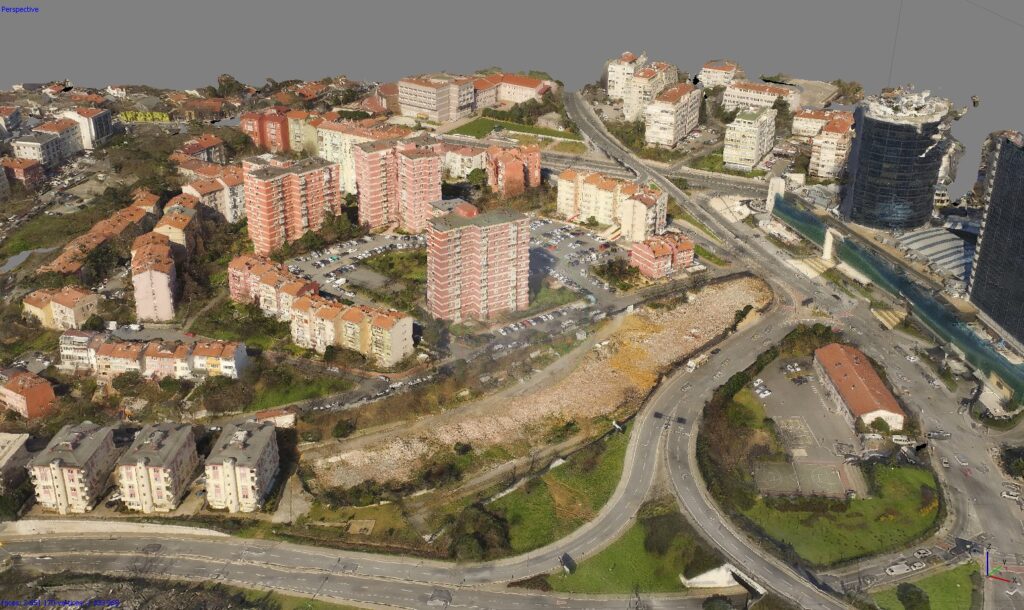 Drone ile yapılan çekimler üzerinden fotogrametri yöntemiyle yapıların veya arazilerin üç boyutlu dijital modelleri oluşturulmaktadır. Bu teknikle elde edilen yüksek hassasiyetli nokta bulutu verisi, mevcut yapıların belgelenmesi, proje geliştirilecek arsaların topografik analizleri ve mimari planlama süreçleri için kullanılabilir. Hem küçük ölçekli yapılar hem de geniş araziler için uygulanabilir. Drone teknolojisi sayesinde, erişilmesi güç veya geleneksel yöntemlerle ölçümlenmesi zor alanlara da kolaylıkla ulaşılabilir. Tüm ölçümleme ve modelleme süreci tarafımızdan yürütülmektedir.