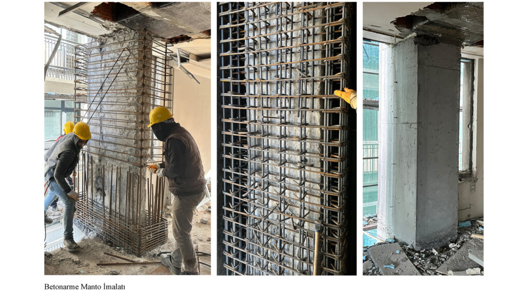 Statik projeye uygun olarak, taşıyıcı kolon ve kirişlerde karbon fiber sarımıyla güçlendirme yapılmıştır. Bazı kolonlarda ise betonarme mantolama tekniği kullanılarak kesitleri kalınlaştırılmış ve yapısal dayanım artırılmıştır.