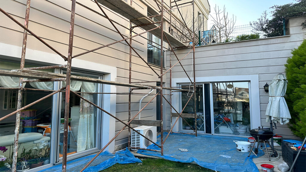 Yapının cephelerinde su yalıtımı kaynaklı sorunlar tespit edilmiştir. Öncelikle cephede gerekli kırımlar ve tamiratlar gerçekleştirilmiş, çatlaklar kapatılarak dış cephe boyası yenilenmiştir. Tesisat amaçlı açılmış deliklerin yalıtımı sağlanmış ve cephenin zayıf noktaları güçlendirilmiştir. Su sızıntılarının yol açtığı iç mekân hasarları da onarılmış, sıva ve boya gibi ince işler tamamlanarak yapı hem estetik hem de dayanıklı bir görünüme kavuşturulmuştur.