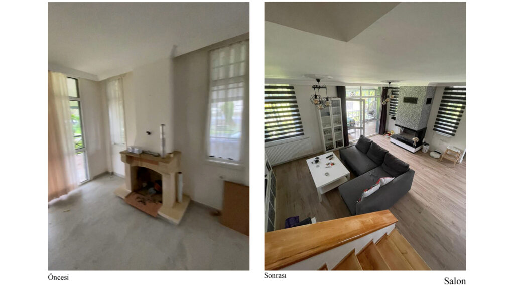 İlk olarak altyapı sorunları giderilmiş; su alan kısımlar yalıtılmış ve rögar alt kotunda kalan bölümler doldurulmuştur. Çatı ve dış cephedeki bozulmuş ahşaplar sökülerek yenilenmiş, dış cepheye ısı yalıtımı (mantolama) uygulanmıştır. İç mekânda, çürümüş merdiven ve döşeme ahşapları onarılmış, sistre ve cila işlemleriyle yenilenmiştir. Giriş kat genelinde ve ıslak hacimlerde zemin seramikleri yenilenmiş; salona özel tasarım doğal taş şömine uygulanmıştır. Elektrik ve sıhhi tesisat altyapısı tamamen