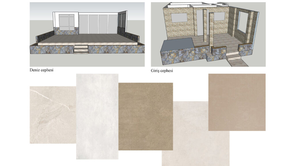 Yazlık ev, hem iç mekân hem de dış cephede kapsamlı bir tadilattan geçirilmiştir.