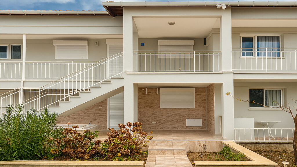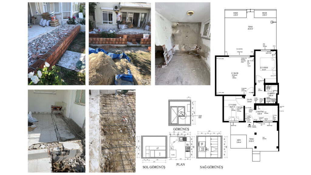 Deniz cephesindeki mevcut teras genişletilmiş, su yalıtımı ve seramik kaplamaları yenilenmiştir. Cephe boyunca yalıtım devam ettirilmiş, alt kısma 1 metre yüksekliğinde doğal taş kaplama, üst bölüme ise dış cephe boyası uygulanmıştır. Bahçede deniz yönündeki duvarlar yenilenmiş, yürüyüş yolları ve basamaklar yeniden imal edilmiştir.
